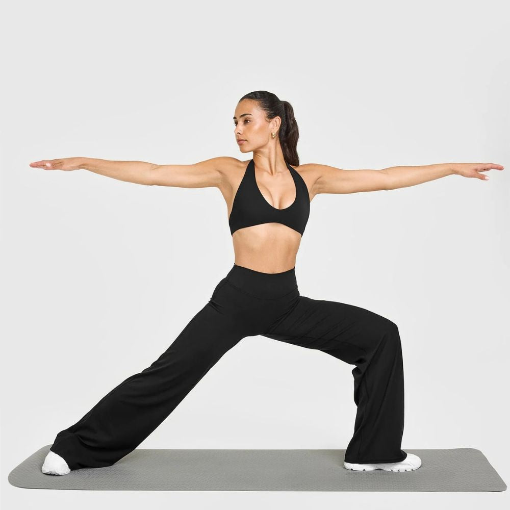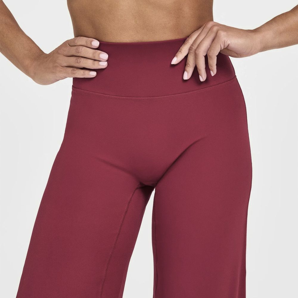 Flowline uses a brushed, buttery-soft knit (81% polyamide, 19% elastane). It’s opaque, smooth on skin, and drapes straight without clinging.