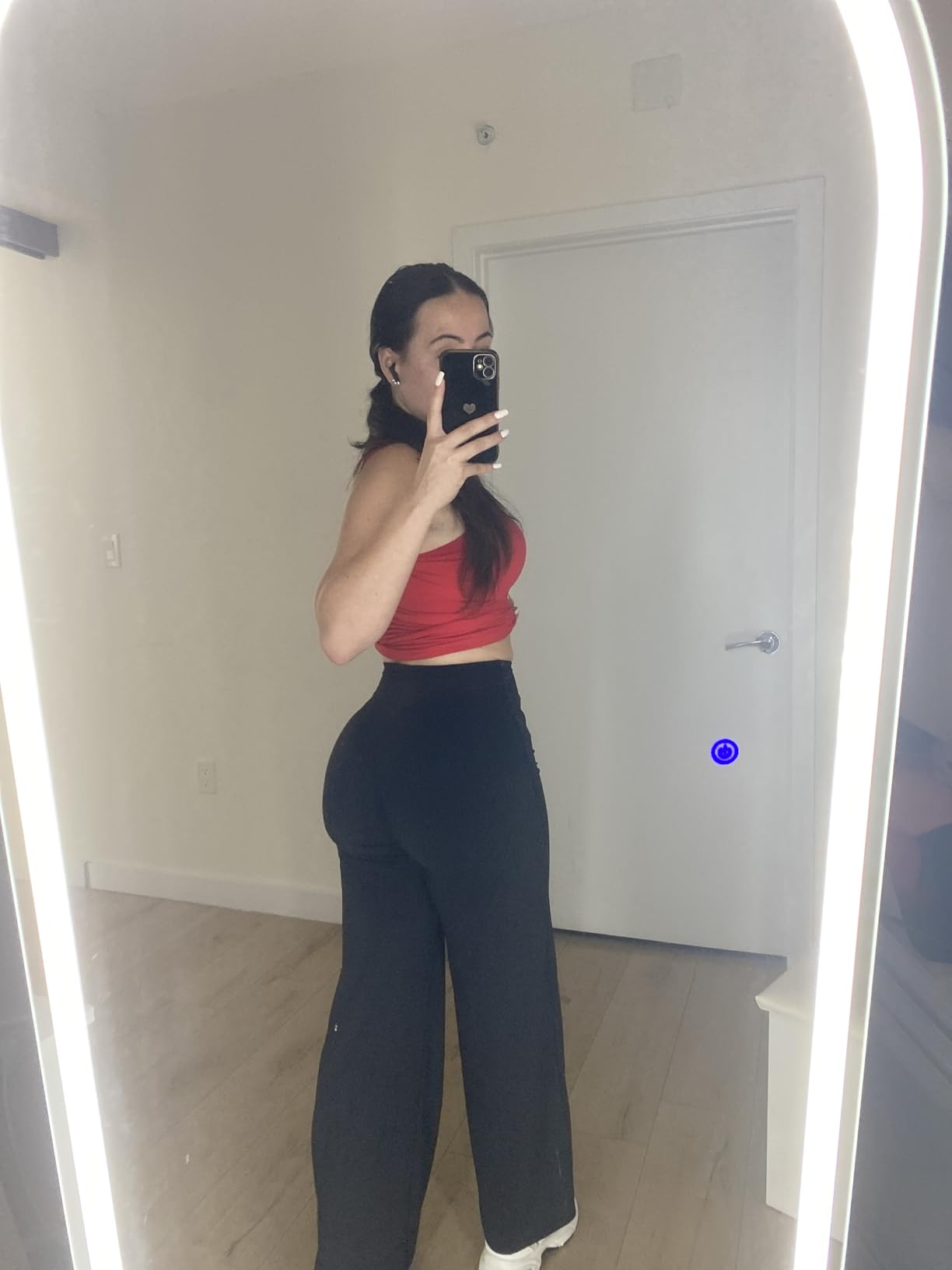 True to size with a stay-put high waist. If you’re between sizes and prefer a looser hip/thigh, go up one size.